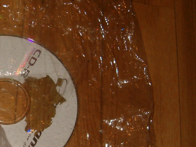 Use a screw in the same way as when damaging a CD-R. This layer is more sturdy than on CD-Rs. This disc should look like in figure 6.